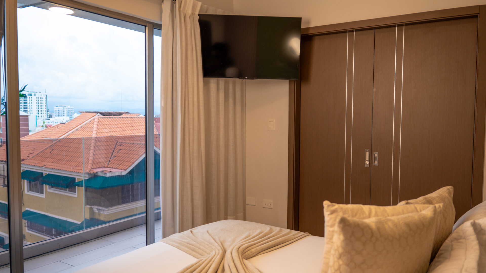 Hospédate en nuestras Serenity Suites en Brickell Aparthotel, ubicadas en Bella Vista. Disfruta de cama King, sala, cocina, comedor, Smart TV, baño completo y balcón con vista parcialmente obstruida. Acceso a piscina, gimnasio y salón de conferencias. Las fotos son ilustrativas del estilo y categoría reservada, y pueden no coincidir exactamente con la unidad asignada.